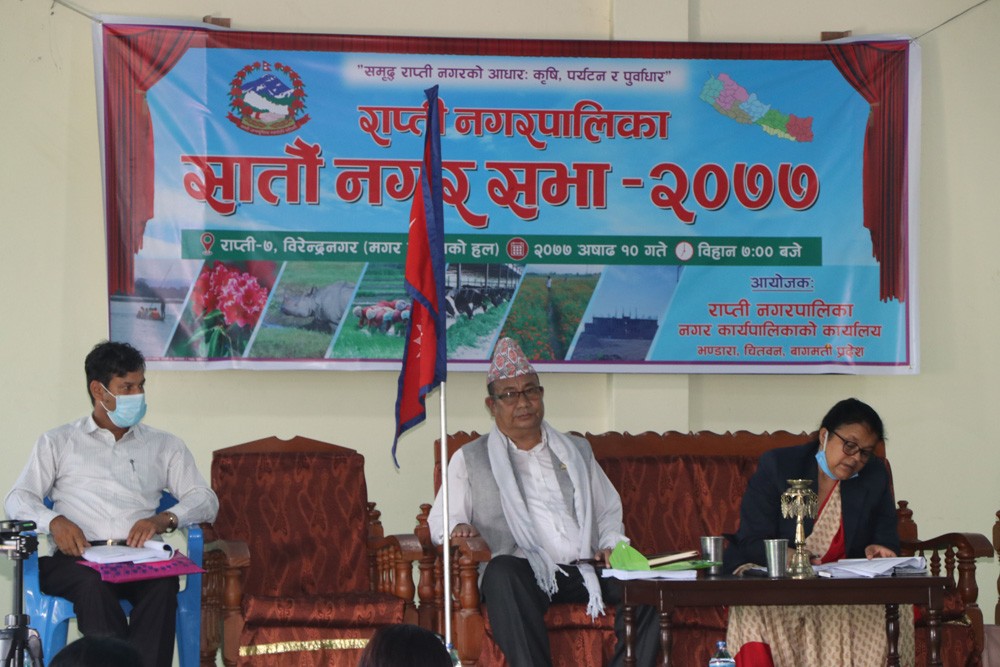 सभामा बागमती प्रदेशका भुमि, ब्यवस्था तथा कृषि सहकारीमन्त्री दावादोर्जे लामाले हरेक क्षेत्रमा पर्याप्त बजेट रहेकाले कार्यान्वयनमा जोड दिन आग्रह गरे । स्थानीय तहसँगै प्रदेश सरकार र संघीय सरकारको तर्फबाट समेत पर्याप्त बजेट उपलब्ध भइरहेको बताउदै उनले स्थानीय जनप्रतिनिधि तथा सरोकारवालाले रातदिन नभनी काम गर्नुपर्नेमा जोड दिए । आफुले राप्तीको हरेकजसो क्षेत्रका लागि पहल गरि विभिन्न साना ठुला योजनाका लागि बजेट बिनियोजन गराएको बताउदै उनले प्रदेश सरकार जनतासँगै रहेको प्रस्ट पारे । नगरको निति तथा कार्यक्रम अब्बल रहेको बताउदै सोही अनुसारको बजेट हुनुपर्ने सुझावसमेत दिए ।