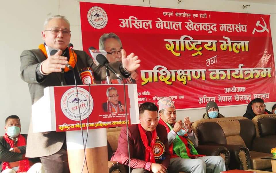 ललितपुरमा अखिल नेपाल खेलकुद महासंघको राष्ट्रिय भेलालाई सम्बोधन गर्दै मन्त्री थापाले देशलाई विकासको दिशामा लैजान र राजनीतिक स्थायित्व कायम गर्न प्रधानमन्त्री ओलीको पक्षमा खडा हुन खेलाडीहरूलाई आग्रह गरे।