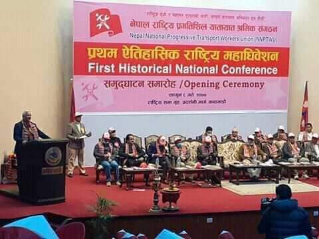 काठमाण्डौ । नेपाल राष्ट्रिय प्रगतिशिल यातायात श्रमिक संगठनको काठमाडौंको राष्ट्रिय सभागृहमा फाल्गुन ८ र ९ गते सम्पन्न पहिलो राष्ट्रिय महाधिबेशनले राजेन्द्र शर्मालाई अध्यक्षमा चयन गरेको छ ।
