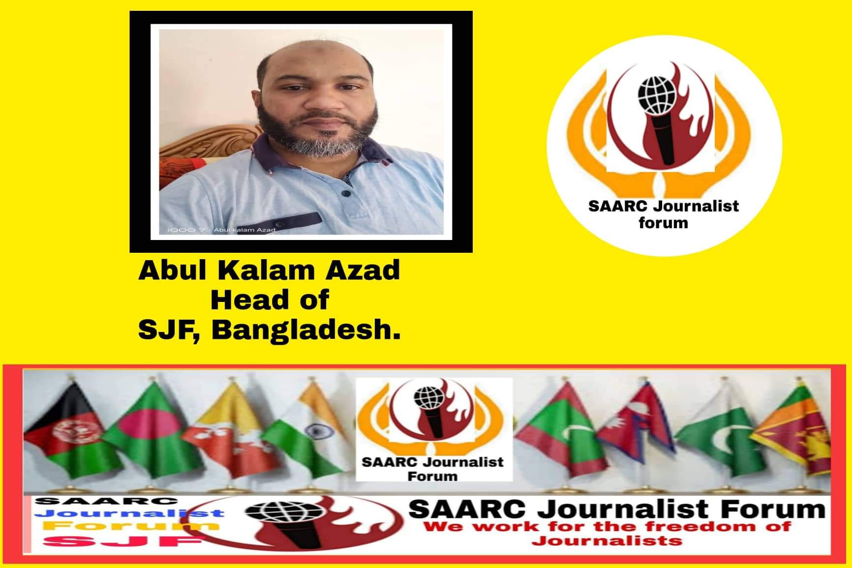 Dhaka. Famous Senior journalist of Bangladesh Abul Kalam Azad has been given charge of SJF Bangladesh Chapter. He is the editor and publisher of several newspapers and the founder of several journalists organizations in Bangladesh.
