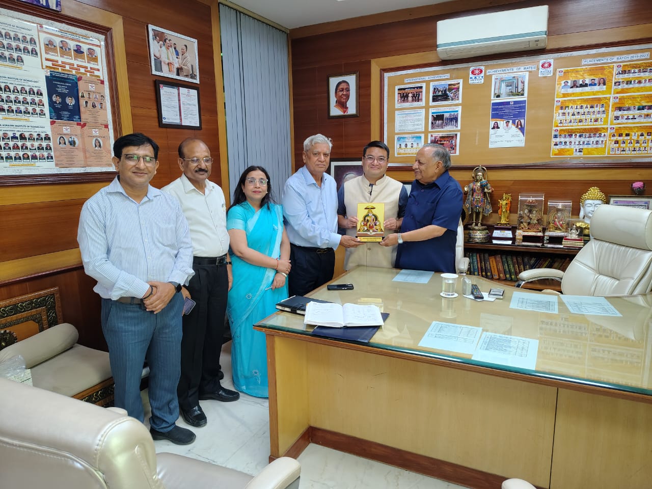 Dr. Nand Kishore Garg, founder chairman and chief adviser at MAIMS, extended a warm welcome to the guest by presenting him with a sapling and a commemorative memento.