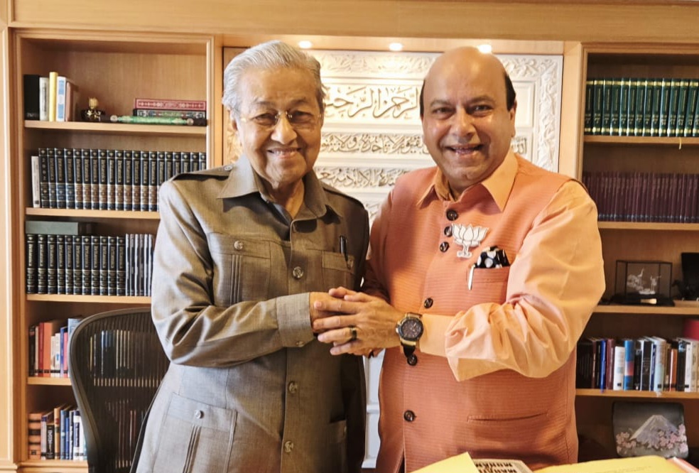 Kaula Lumpur. Promoting People To People Friendship between India & Malaysia, Senior Indian BJP Leader & Global Bharat Brand Ambassador Dr. Vijay Jolly met legendary Malaysian Ex-Prime Minister Tun Dr. Mahathir bin Mohamad. Dr. Mahathir is aged 100 years and has served as Malaysia Prime Minister for total of 24 years. Born on 10th July 1925. His political career spans more than 75 years.