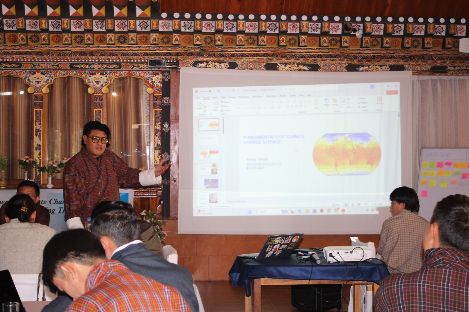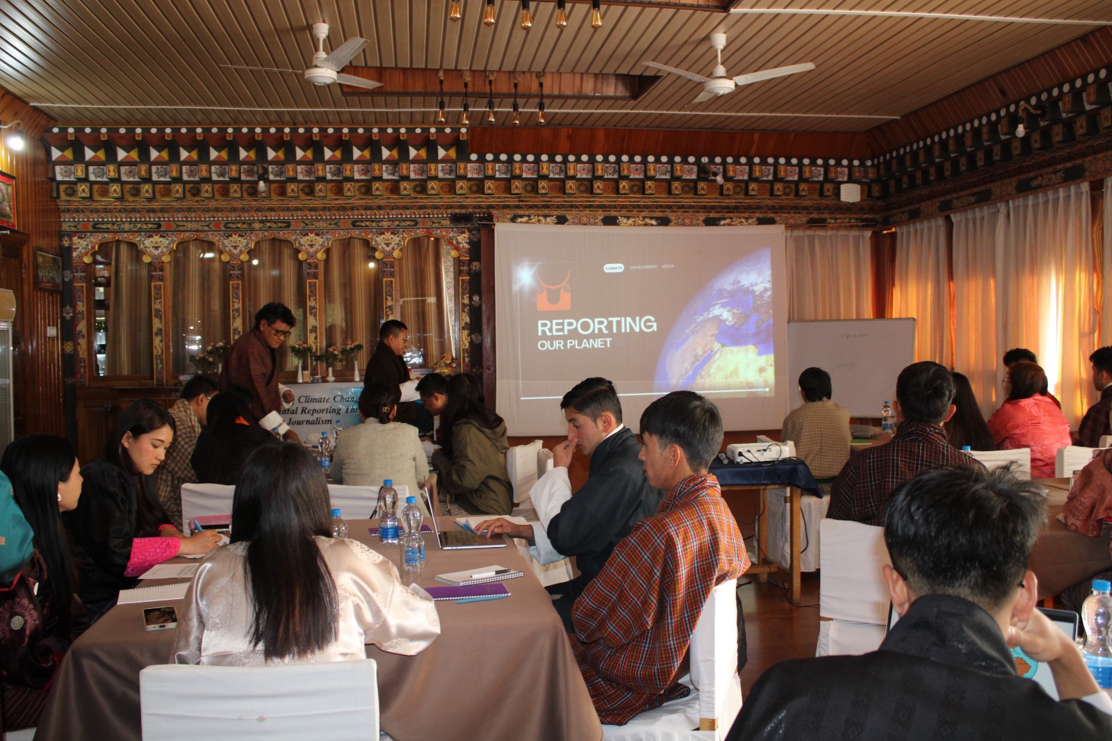 An NCHM official briefed participants on observed and projected climate trends in Bhutan, including rising temperatures, changing rainfall patterns, glacial lake outburst flood risks, and the importance of early warning systems. The session emphasised the need for journalists to understand climate data and uncertainty in order to report responsibly and accurately. On the second day, officials from the Bhutan Trust Fund for Environmental Conservation will discuss climate finance, while experts from the Department of Forests and Park Services will introduce tools and methods for climate change reporting. Two moderators will also guide participants through long-form narrative techniques, human-interest storytelling, and the development of strong and feasible reporting pitches.