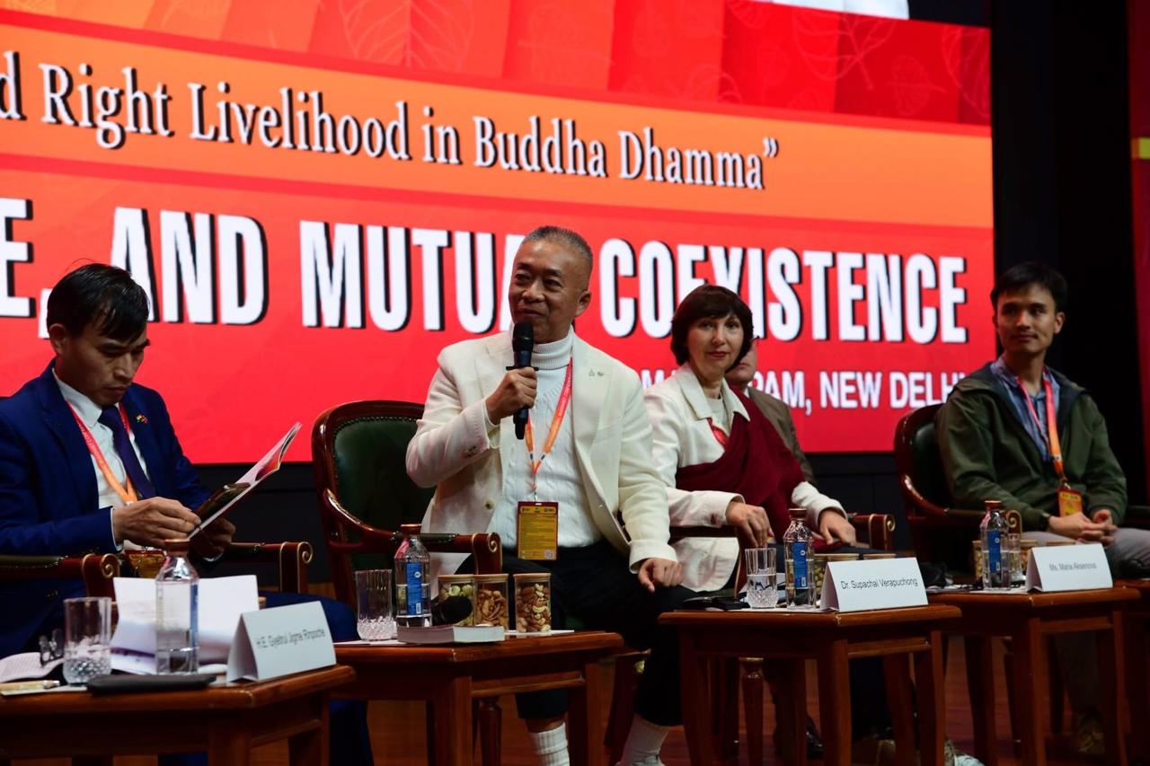 H.E. Mr. Maris Sangiampongsa, Former Foreign Minister of Thailand, spoke about the historical significance of Buddhism in Southeast Asia as a mediator between state politics and moral accountability. He emphasized how Buddhist principles of compassion, moderation, and dialogue have long shaped the diplomatic culture of the region, providing insights into the current global governance situation characterized by tension and fragmentation. H.E. Ms. Daw Nu Mra Zan, Deputy Minister for Religious and Cultural Affairs, Myanmar, spoke about the significance of Buddhism in promoting social cohesion in multi-ethnic and multi-religious societies. She emphasized the importance of inter-religious dialogue and cultural sensitivity as a manifestation of Buddhist ethics in public life, especially in societies undergoing transition. From the Indian side, H.E. Shri Chowna Mein, Deputy Chief Minister of Arunachal Pradesh, spoke about Buddhism as a living tradition that influences the life of the communities in the Himalayan regions of India. He said that the Buddhist philosophy offers a natural and congenial environment for harmonious coexistence, environmental consciousness, and cultural continuity, particularly in border regions that act as bridges of civilization. Speaking on behalf of the Russian Republic of Kalmykia, H.E. Mr. Dzgambinov Ochir Vladimirovich emphasized the ability of Buddhism to thrive outside Asia, thus proving its versatility in different cultures and political structures. He said that Buddhist ethics can enhance intercultural understanding and international cooperation in a multipolar world.